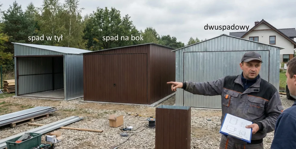 Dach w garażu blaszanym: spad w tył, spad na bok czy dach dwuspadowy – co wybrać i dlaczego?